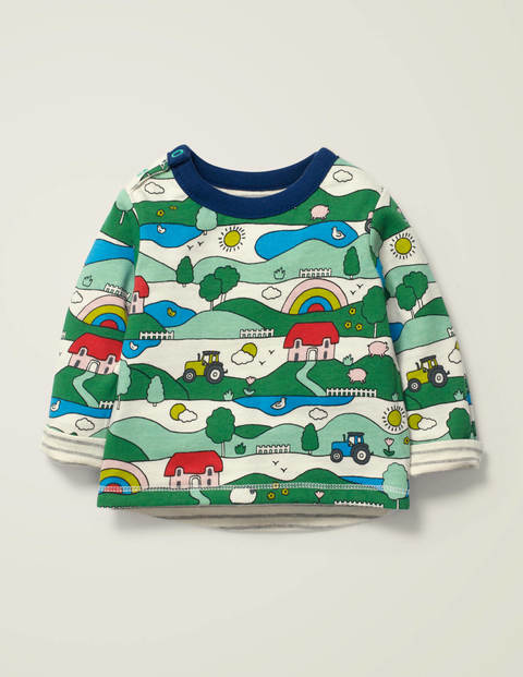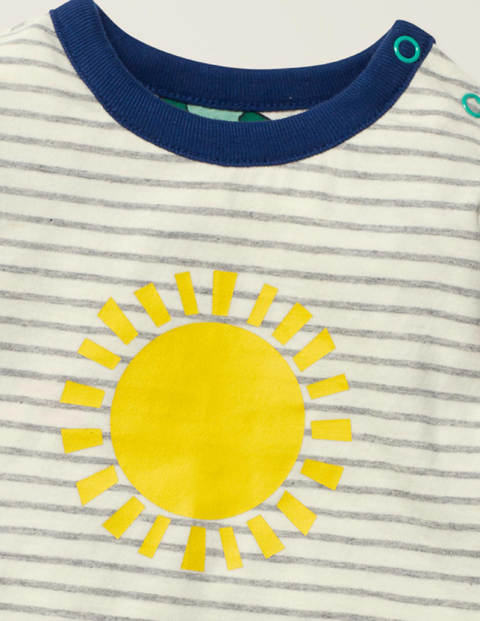 With stripes on one side and a dynamic print on the other, this reversible T-shirt impresses whichever way it's worn. The light-as-a-feather bonded fabric is easy to move in so energetic tots can explore to their heart's content. Double layer fabric, back by popular demand Garment washed for softness Printed logo Shoulder popper fastening Fully reversible, the care label has been hidden in a pocket 100% cotton Machine washable