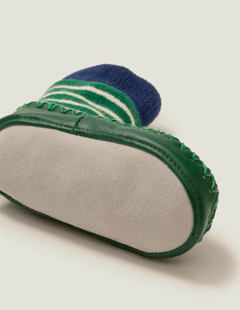 These cheeky slipper socks with a jolly cow on the front make first steps fun. They're crafted from cosy striped cotton with a deep-rib cuff and an anti-slip leather sole (because toddling's tricky when you're just a learner). Sole 100% leather Side panel 100% textile and polyurethane Main 85% cotton 14% polyamide 1% elastane